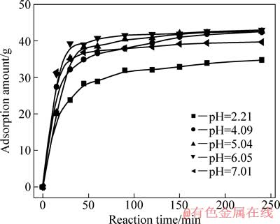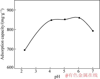 Fig. 6 Effect of pH value on adsorption capacity of D301 resin