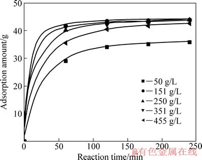 Fig. 7 Adsorption curves of D301 resin under different WO3 concentrations