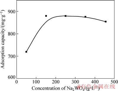 Fig. 8 Effect of WO3 concentration on adsorption capacity of D301 resin