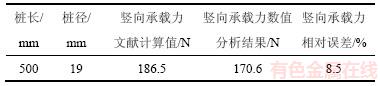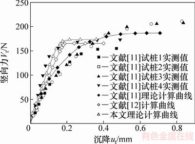 文献[15]中模型桩竖向承载力为0.338 MN,本文计算值为0.314 MN,相对误差为7.1%。