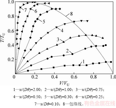 从弹性到弹塑性阶段,无论是V→T加载还是T→V加载,随着2种荷载组合(Vt,Tt)的增加,临界滑动点由地表逐渐发展到桩底,桩周土体由部分进入塑性到全部进入塑性,此时对应的Tt(Vt)即为桩在承受一定竖向力Vt(扭矩Tt)下所能承受的极限扭矩(竖向力),不同的(Vt, Tt)即构成承载力包络线。