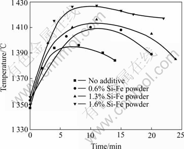 Fig.2 Curves of temperature change against time with Si-Fe as additive agent
