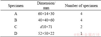 Table 1 Dimensions and number of TC21 alloy specimens for processing