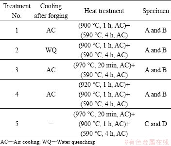 The schematics of every heat treatment are shown in Fig. 2. And t0, t1, t2, t3 in horizontal axis in Fig. 2 represent the time when specimens were cooled to room temperature after forging, the first annealing in triple heat treatment, solution or the secondary annealing in triple heat treatment, and aging or the third annealing in triple heat treatment, respectively.