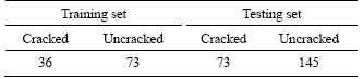 There are 109 transverse cracks within three roads according to the video data. After all, the transverse cracks only occupy a small portion in these sections, and most sections are uncracked. To circumvent the influence of unbalanced sample data, under-sampling the category with a large proportion (uncracked section) is a common way [16]. Besides, enough data should be used to train the classifier. Hence, the number of selected uncracked segments is 2 times of the cracked segments, namely 218.