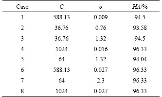 Table 5 Optimal C, σ and HA of each case