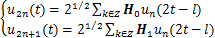 式中:un(t)为t时刻的信号在分解后的节点n处的表达式;
