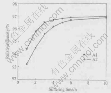 Fig.2 Relationship between relative density and sintering time