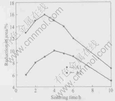 Fig.7 Relationship between reduction in area and sintering time cal properties.