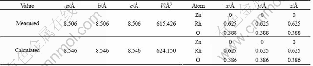 表1 ZnRh2O4的晶格参数及原子坐标