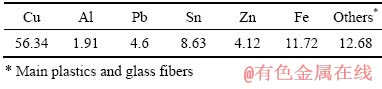 试验所用的原料是报废电视机WPCBs经破碎、研磨、分选得到的多金属粉末,其组成如表1所示,