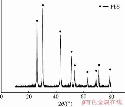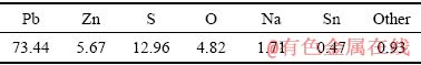 由图3可以看出,沉淀产物主要是方铅矿。由于锌在碱性加压氧化过程中浸出率较低,而铅的浸出率远远大于锌浸出率,所以沉淀产物XRD谱中闪锌矿物相的峰被方铅矿物相的峰所掩盖,未能分析出闪锌矿物相,通过硫化沉淀得到的产物是含量较高的方铅矿精矿,可作为火法炼铅的优质原料。