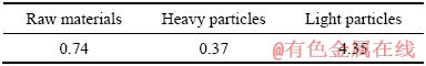 废印刷线路板铜粉经过碱性加压氧化浸出处理后,锡、铅、锌、铝等金属溶解进入浸出液中,WPCBs机械预处理过程中因解离不完全而包裹在金属颗粒表面的塑料、阻燃剂等有机物在浸出过程中从金属表面脱落,使部分被包裹的金属暴露出来。因此,碱性加压氧化浸出渣可进一步将废印刷线路板铜粉中残存的有机物分离出来,浸出渣摇床分选得到少量的轻颗粒物和富集大量金属的重颗粒物,重颗粒物可用作铜冶炼的原料,有效减少冶炼过程中有机物燃烧释放有害气体。