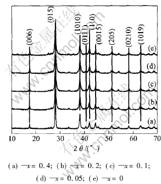 Fig.2 XRD patterns of quaternary AlxBi0.5Sb1.5-xTe3 alloys