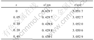表1 由X射线衍射分析得出的AlxBi0.5Sb1.5-xTe3合金的晶格常数