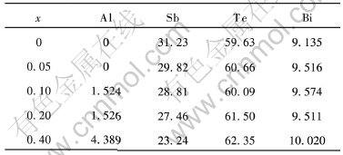 表2 由EMPA分析得出的AlxBi0.5Sb1.5-xTe3合金的化学成分