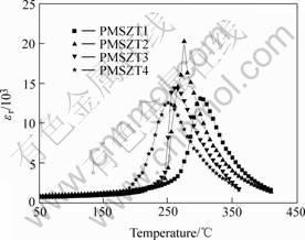 The specimens in this study were fabricated according to formula: xPb(Mn1/3Sb2/3)O3-(1-x)Pb- (Zr1/2Ti1/2)O3, x=0.06, 0.07, 0.08, 0.09, (respectively abbreviated as PMSZT1, PMSZT2, PMSZT3, PMSZT4). The specimens were prepared by traditional ceramics process. The reagent-grade Pb3O4, ZrO2, TiO2, MnO2 and Sb2O3 powders were acetone-milled for 12h in a zirconia ball mill and then calcined at 850 ℃ for 2 h. The calcined powders were ground, ball-milled again and pressed into disks using PVA as a binder. After burning off PVA, the pellets were sintered in a sealed alumina crucible at different soaking temperature (from 1 100 ℃ to 1 300 ℃) for 2 h. In order to compensate for PbO loss from the pellets, a PbO-rich atmosphere was maintained by placing an equi-molar mixture of PbO and ZrO2 inside the covered alumina crucible.