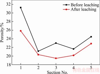 Fig. 6 Porosity of longitudinal section of orebody before and after leaching