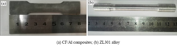 图1 CF/Al复合材料与铸态铝合金ZL301拉伸试样