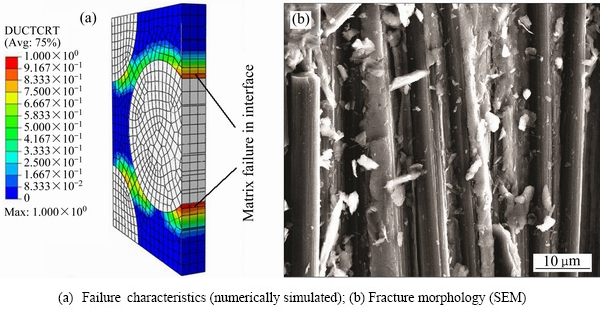 2) 横向拉伸时CF/Al复合材料内部首先发生界面损伤,随变形量增加先后出现界面失效以及基体损伤与失效,结合数值模拟和拉伸实验结果表明,界面损伤诱发的界面区域基体的延性断裂是引起复合材料横向拉伸破坏的主要机制。