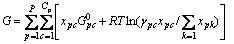 式中:P是体系的总相数;Cp是p相中的组分数;xpc是p相中组分c的摩尔数;γpc 是p相中组分c的活度因子。
