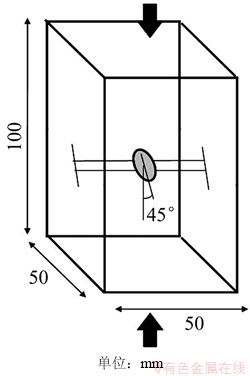 模具尺寸(长×宽×高)为50 mm×50 mm×100 mm,如图2所示,一个预置好三维裂隙的模具。由5块有机玻璃板组成,通过有机绝缘硅脂密封形成一个整体,模具良好的透明性使得可以直接观察到试件的整个固化过程。试件固化后即可拆卸,在浇筑之前内壁必须涂抹脱模剂,便于拆模。左右两侧板面上钻出不同位置的孔,通过柔软的细线牵拉和固定而形成不同角度、不同类型的裂隙组合体。该模具可以制作出不同条数、不同错距的三维裂隙试件。三维裂隙的定位需在浇注材料前。通过研制的模具可以制作不同角度、不同数目和不同相对位置的含三维裂隙(组)试件。