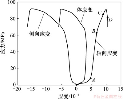 1) 第1阶段(OA段)为初始压密阶段。应力从0 Pa到峰值强度的9.2%。