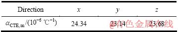 表4 7050-T7451铝合金在不同方向的平均热膨胀系数