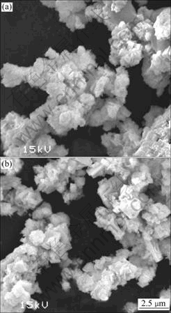 Fig.4 SEM images of Na2La2Ti3O10 (a) and Ag0.3Na1.7La2Ti3O10 (b)