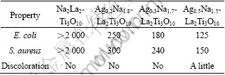 Table 3 Antibacterial activity and light permanency of Na2La2Ti3O10 and AgxNa2-xLa2Ti3O10 (MIC/(mg?L-1))