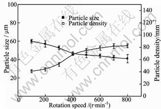 Fig.2 Effect of rotation speed on average grain diameter and grain density of primary phases