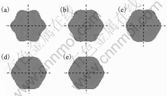 Fig.7 Simulation result for solidification velocity and rotation speed on structure evolution: (a) 200 r/min; (b) 400 r/min; (c) 600 r/min;(d) 800 r/min;(e) 1 000 r/min