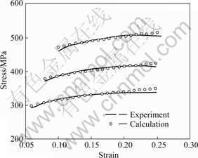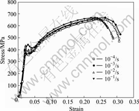 Recently, with the rapid development of computer technology and the gradual advancement of numerical method, semi-analytical numerical method, the finite element modeling technology has become the most practical and convenient way. In order to achieve the numerical simulation calculating rheological forming process of materials, it is necessary to find the constitutive equations, by which the rheological properties of materials under hot-working condition are described more accurately. As the rheological constitutive models of materials presented by far are not all applicable, it is the most widely used method to establish the related rheological model that collects abundant stress datum under certain strain rates and temperature by experiments. CLAUSEN et al[1] used the two modified Johnson-Cook models describing flow stress and fracture strain of aluminium alloy AA5083-H116 based on a great deal of tests under different strain rates, temperatures and triaxialities. LEE and YEH[2] investigated the deformation behavior of AISI 4340 alloy steel under high strain rates ranging from 500 to 3 300 s-1 and at constant temperature in the range of 20-1 100 ℃ by means of a split Hopkinson bar. KOZLOWSKI and ANAND[3] proposed one- dimensional analytical models to describe the response of plain carbon steel at high temperature and low strain rate using the experimental data set of Wray. HUESPE[4] described the flow stress and strain of steel under high temperature with Anand model and Chaboche model, taking hardening effect, creep and other factors into account. KHAN and LIANG[5] studied the behaviors of three BCC metal over a wide range of strain rates and temperature and proposed a new constitutive model. LUBARDA et al[6] investigated the strain rate effects in rheological models of inelastic response. LUO et al[7] studied the tesile rheological properties of sheet Tc1T- alloy under different temperatures and strain rates.