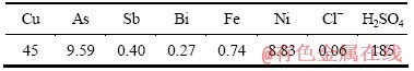 表1 铜电解液的化学成分