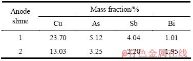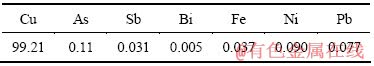 Table 2 Main chemical compositions of anode copper (mass fraction, %)