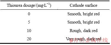 Table 3 Effect of thiourea dosage on surface quality of cathode copper