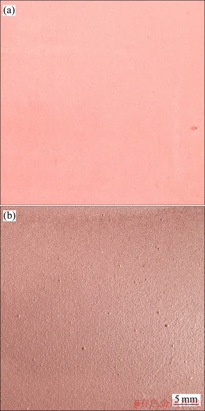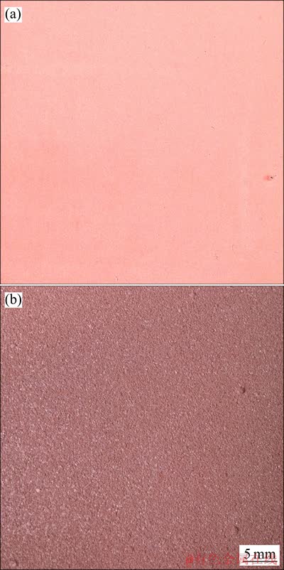 Fig. 4 Photos of cathode copper without thiourea(a) and adding 20 mg/L thiourea(b)