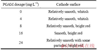 表4 PGAM用量对阴极铜表观质量的影响