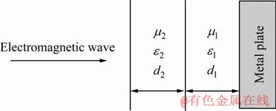 为材料的复介电常数;c为真空中的光速;f为电磁波的频率;d1和d2为涂层厚度。双层复合吸波涂层的模型见图1。