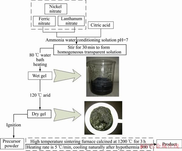 图2 NiLa0.02Fe1.98O4样品的制备流程