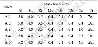 元素Ta作为一种抗氧化、抗腐蚀能力很强的元素,在高温钛合金中的应用并不太多。有研究表明,在TiAl合金中添加2%Ta可明显提高抗氧化性能[10]。但是,Ta对近α高温钛合金抗氧化性能的作用还缺乏广泛的研究。本文作者以Ti-60A高温钛合金为基础,就不同Ta含量对近α高温钛合金抗氧化性能的影响进行系统的实验研究。