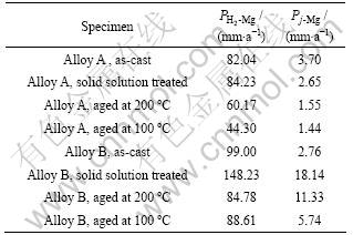 According to ZHAO et al[9, 12], the corrosion current density is related to the average penetration rate, Pj-Mg (mm/a), using