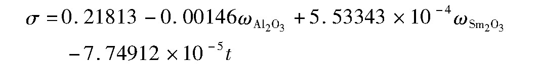 上述回归方程适用的范围为:ωAl2O3为0%~10%, ωSm2O3为0%~5%, t为905~1055℃。