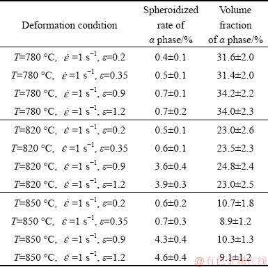 Table 1 Spheroidized rate and volume fraction of α phase in deformed TC17 alloy at 780, 820 and 850 °C and strain rate of 1 s-1