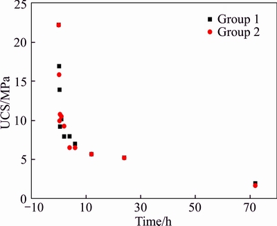 Figure 13 Water-degraded UCS of red shale at different immersion time