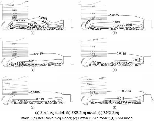 Fig. 5 Simulation results of different turbulence models vs measured results