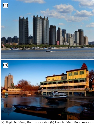 Fig. 6 Actual layouts of building complex along water body in a northern city of China: