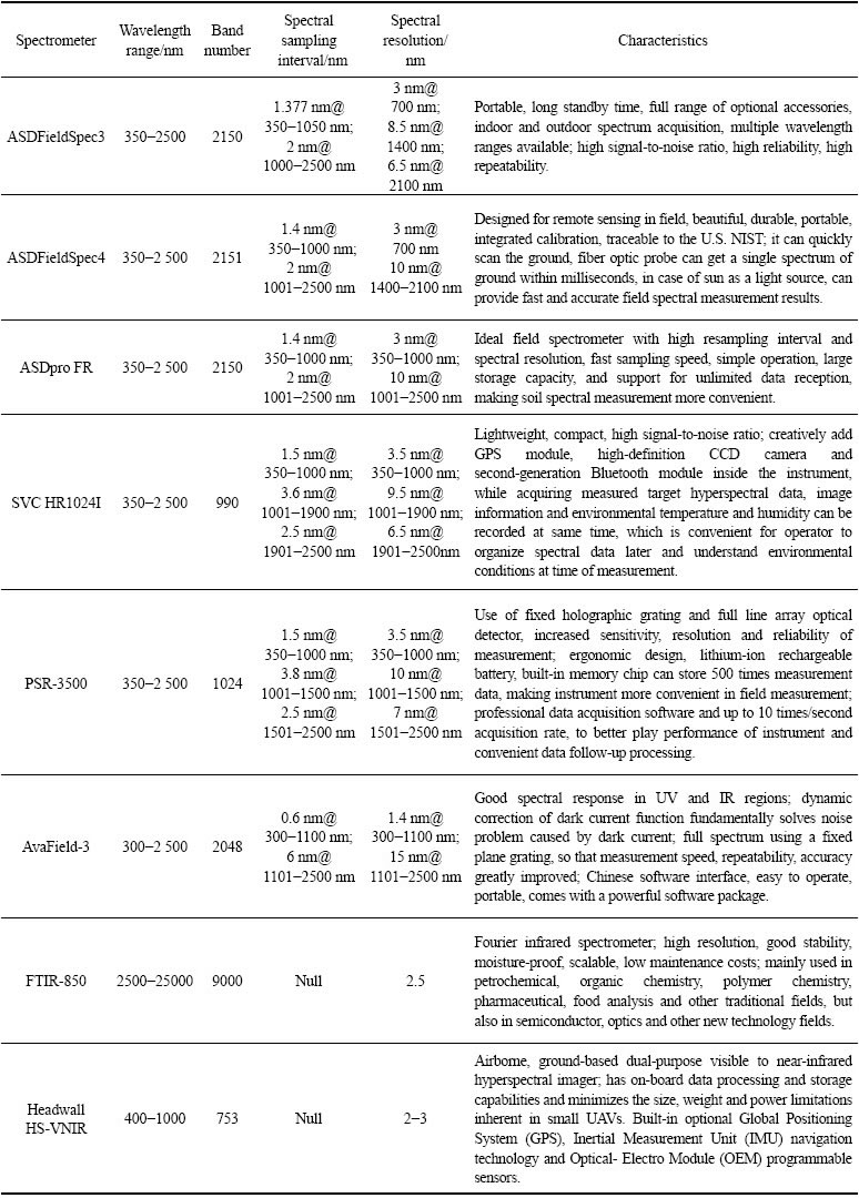 Table 1 Basic parameters of commonly used handheld hyperspectrometers