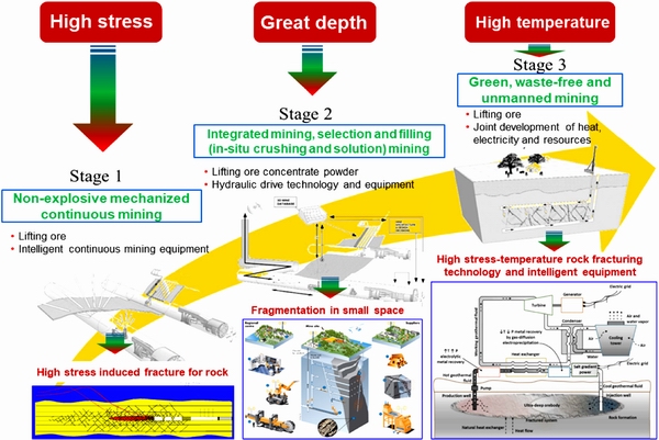 Fig. 2 Three-step strategy for deep mining[24-25]