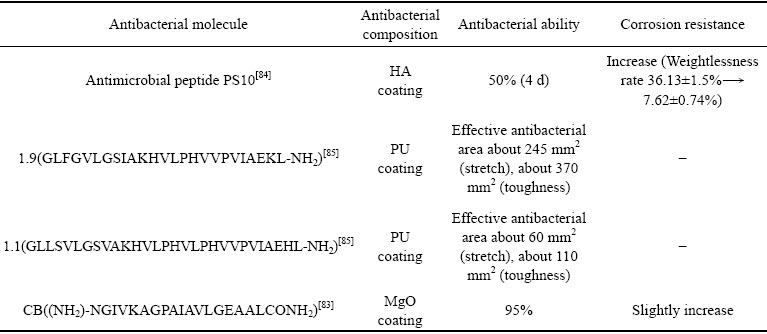 Table 2 Effects of peptides and enzymes on antibacterial and corrosion resistance of magnesium alloys